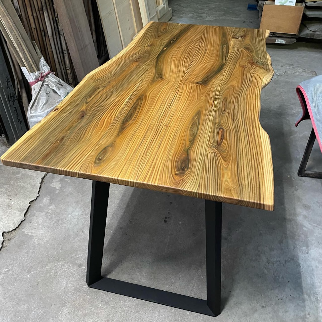 從樹墩、桌板到拼板,保留不同木種的色澤、紋理與份量感。